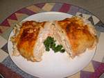 Put the cream cheese and the crab mix in the middle of the chicken
